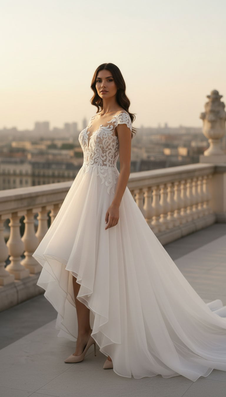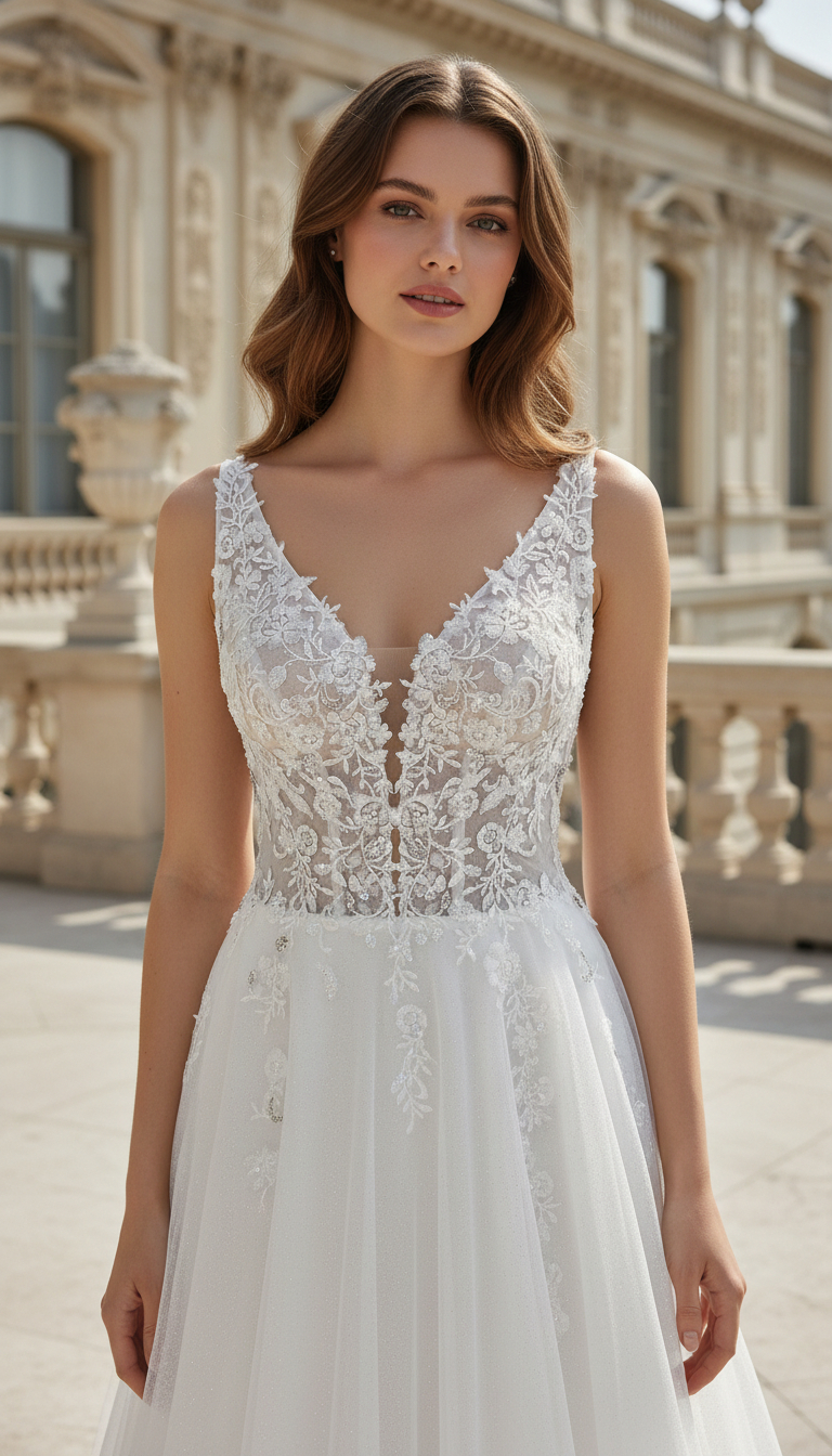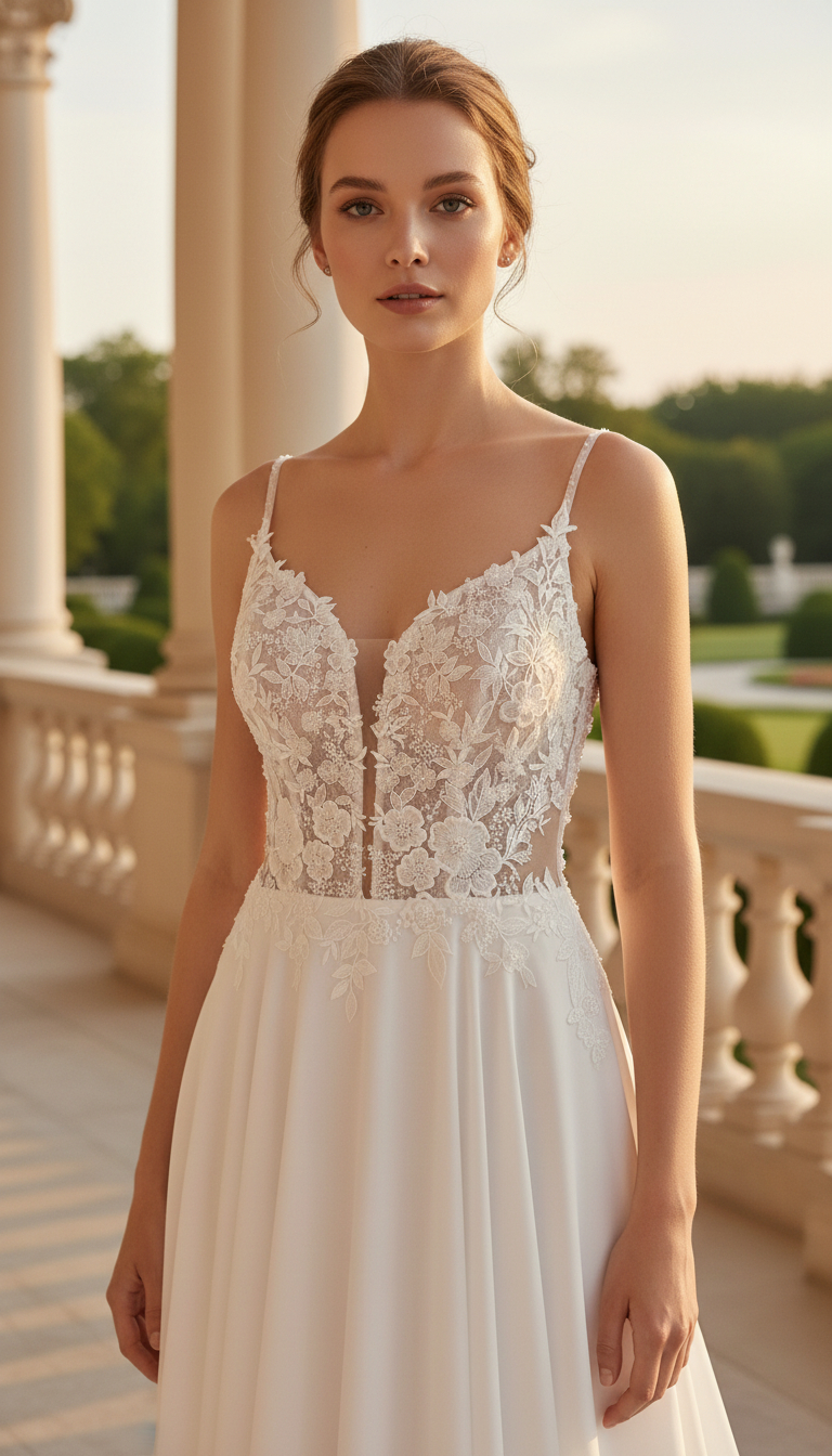 Bei jedem Kleid können Sie Ärmel, Schleppe, Verzierungen usw. hinzufügen oder entfernen, Spitze, Farben, Lagenanzahl und sogar Materialien ändern – ganz ohne Risiko, denn wir zeigen und visualisieren alles so genau wie möglich.
